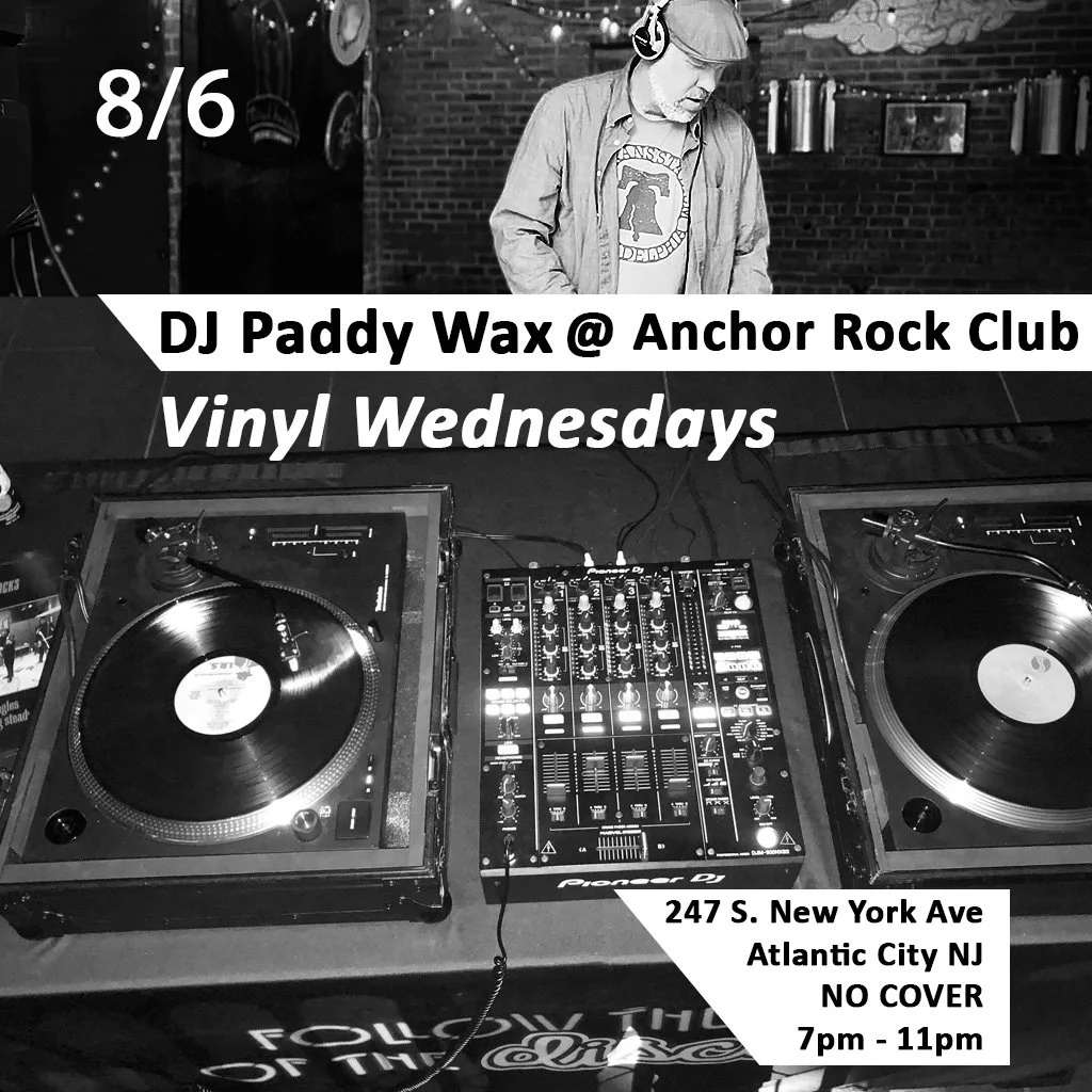 DJ Paddy Wax will be spinning smash hits and deep cuts next Wednesday 8/6 in Atlantic City NJ., He will be bringing that signature genre-jumping chillout vibe in this triumphant return to the one and only Anchor Rock Club.